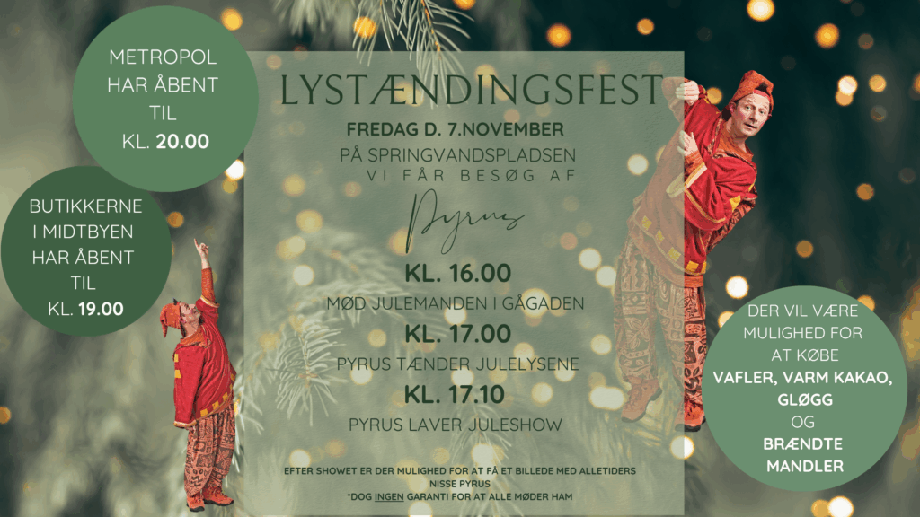 Oplev julemanden i gågaden og hjælp Pyrus med at tælle ned til årets store lystænding.